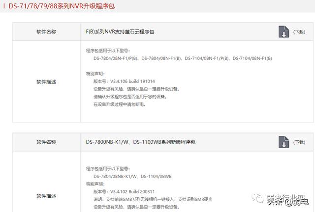 1、先到海康威视官方网站,服务支持---下载---设备升级包下载---DS-71/78/79系列NVR升级程序包,下载址:如下图: