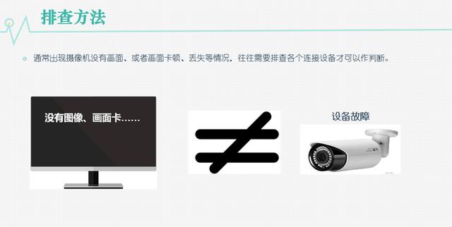 通常出现摄像机没有画面、或者画面卡顿、丢失等情况,往往需要排查各个连接设备才可以作判断。