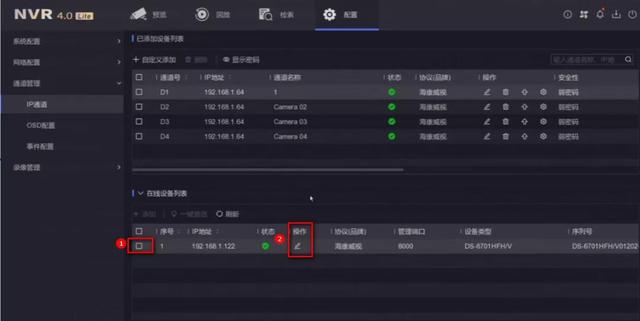 1.点击在线设备列表,勾选对应通道,点击右侧编辑的小图标: