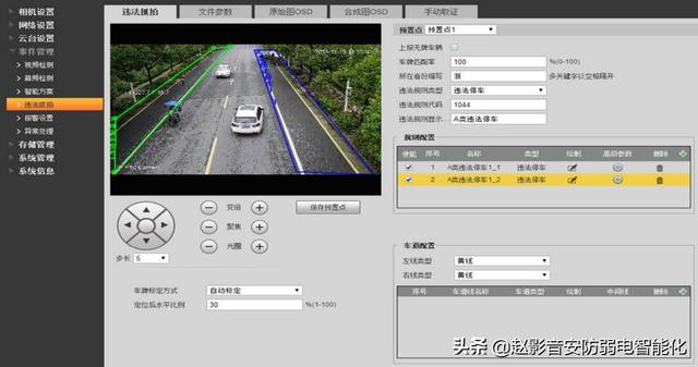 b) 在事件管理——车牌识别菜单里配置检测区域、车道线、检测线及车牌标定。