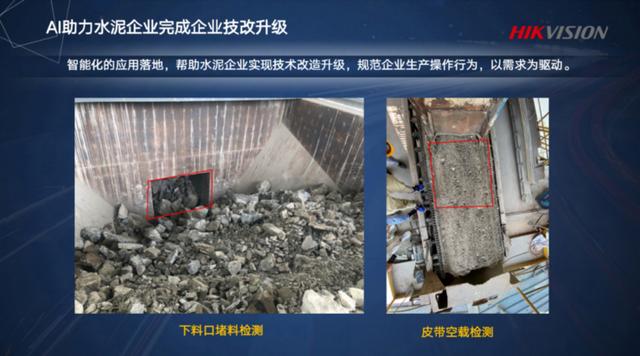 举一个例子,场景非常简单,这是一个水泥厂的应用,检测料口是否堵塞。如果不和场景结合,只是提需求说检测下料口堵料检测,是做不出来可落地的应用的,一定要结合具体的场景。右边的皮带空载检测也一样,不同行业的皮带空载检测需求不一样,要结合场景和业务做,以需求为驱动。