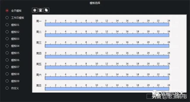 若您需要全天移动侦测录像,选择“报警模板”,点击“保存”即可完成该通道全天移动侦测录像设置;