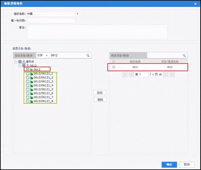 解码器0612已经添加好了,但是解码通道没有勾选并添加到逻辑组织中 ,选中点击添加。
